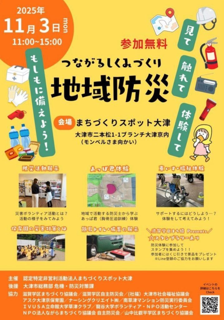 一時避難場所になっているブランチ大津京 近江神宮外苑公園に隣接するまちづくりスポット大津/ ハッシュタグ大津京では、地域の防災力を高めることを目的とした防災イベントを開催します。