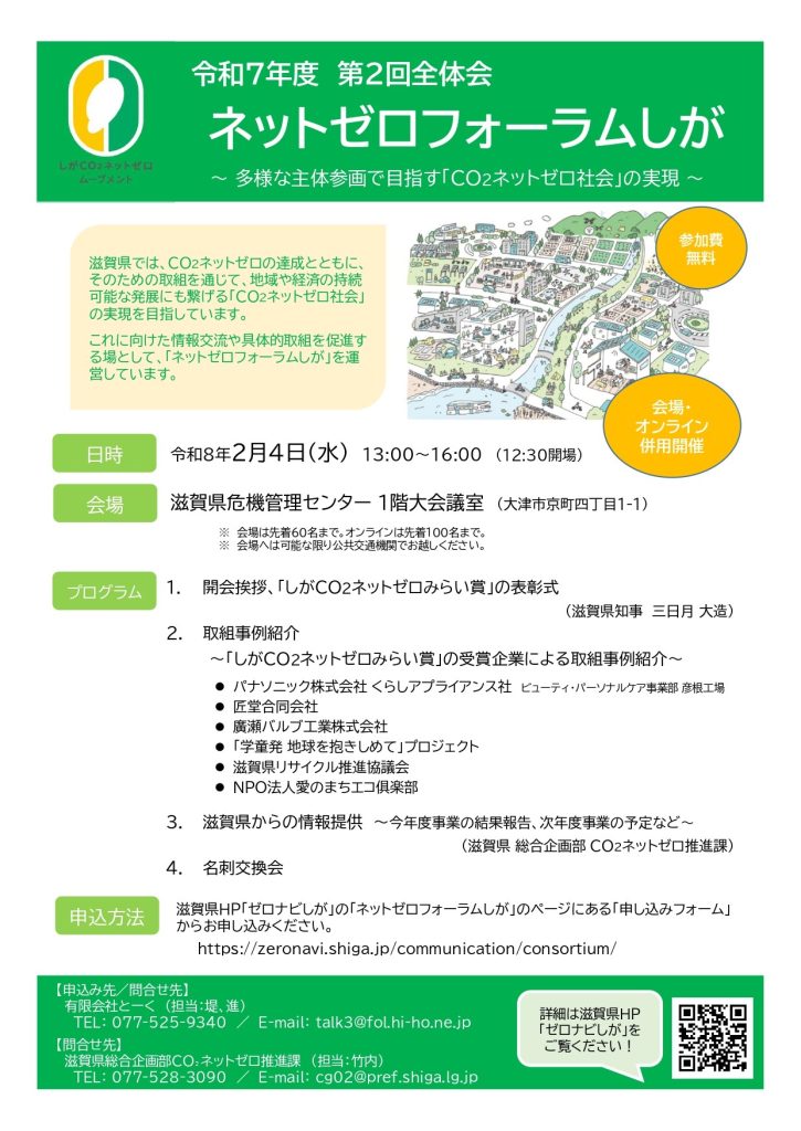 令和7年度第2回「ネットゼロフォーラムしが」を開催します