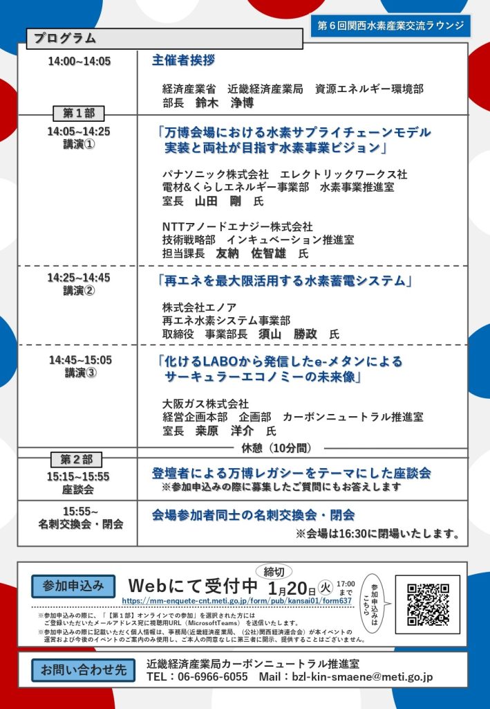 第6回関西水素産業交流ラウンジ~万博レガシーを活かす~ 水素等の社会実装に向けたシンポジウムを開催します