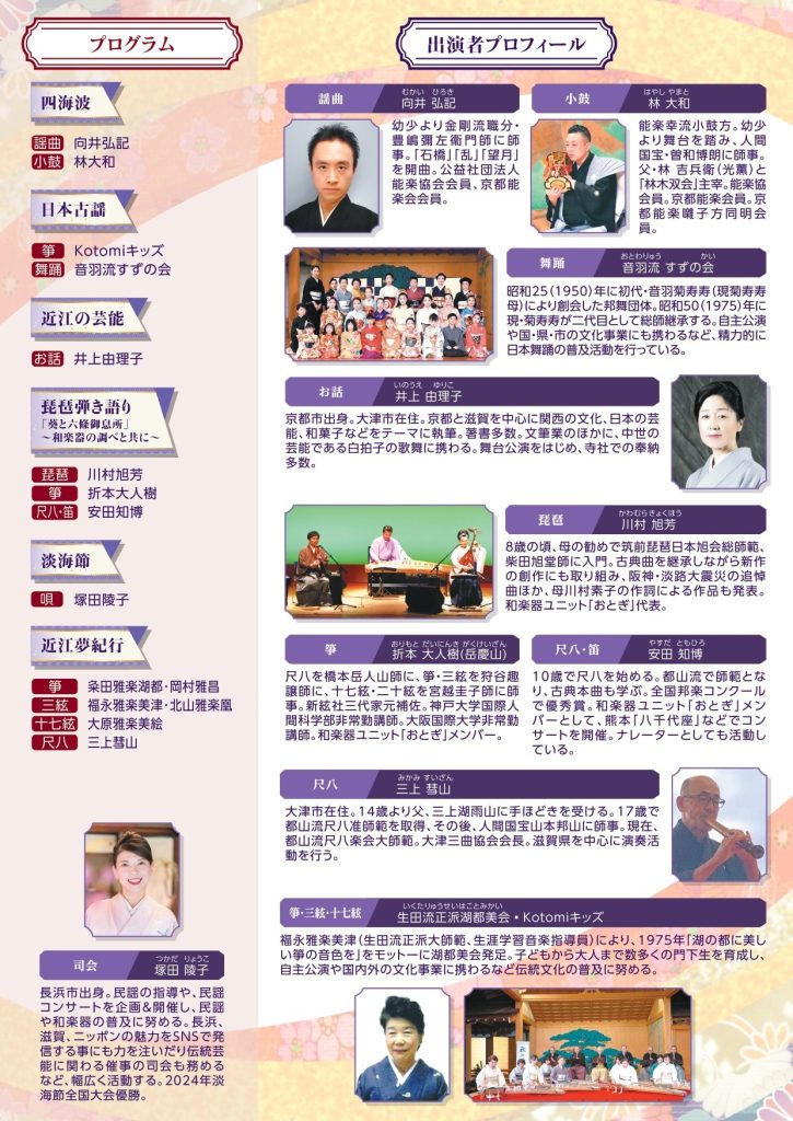 近江の芸能のお話や和楽器によるコラボ演奏をお楽しみください。