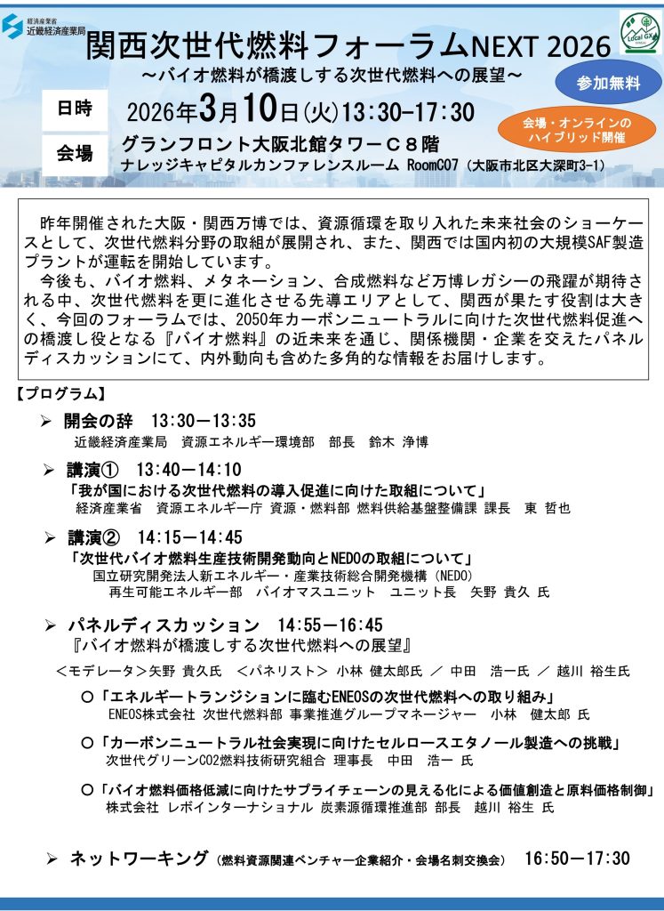 チラシ:「関西次世代燃料フォーラム NEXT 2026」 (PDF形式:596KB)