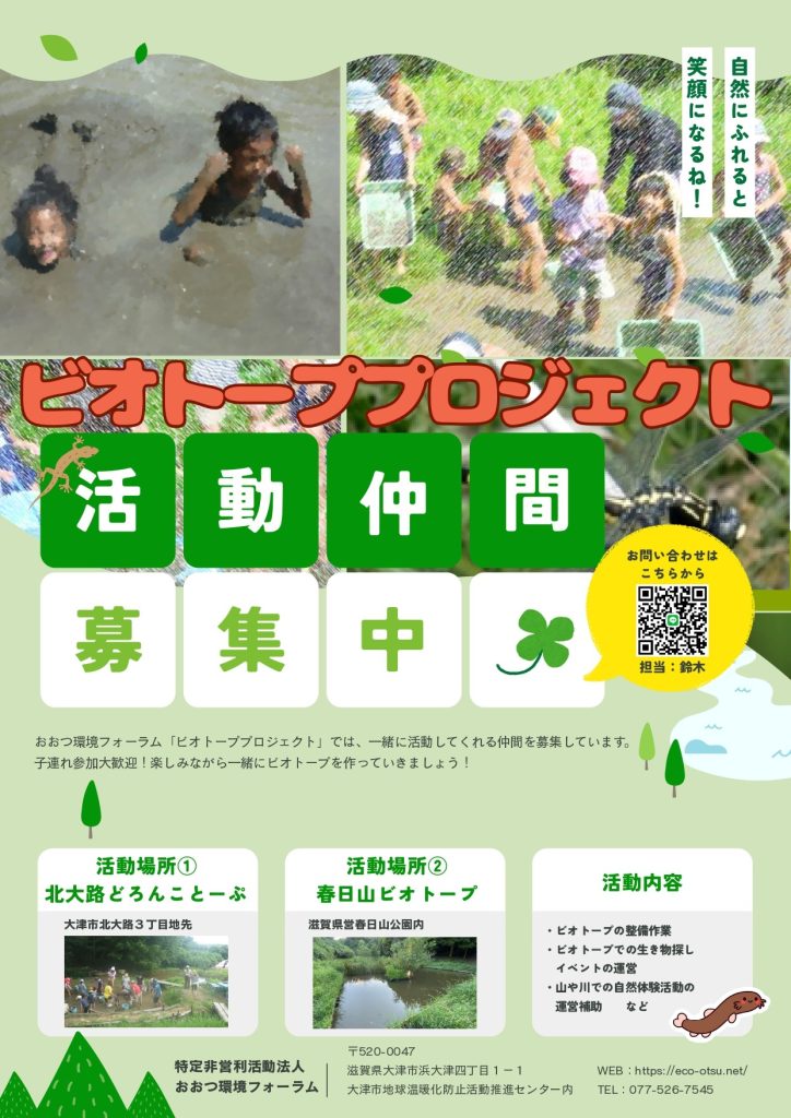 NPO法人おおつ環境フォーラム「ビオトーププロジェクト」では、一緒に活動してくれる仲間を募集しています。子連れ参加大歓迎! 楽しみながら一緒にビオトープを作っていきましょう!
